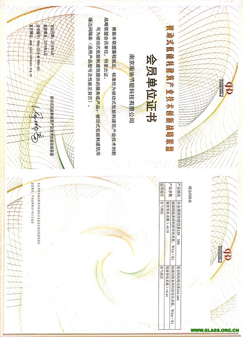 被動式低能耗建筑產業技術創新戰略聯盟會員單位證書