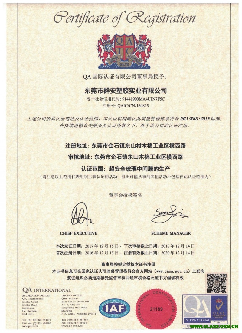 | 發證機構 | QA國際認證有限公司 | 發證時間 | 2017-12-15 |