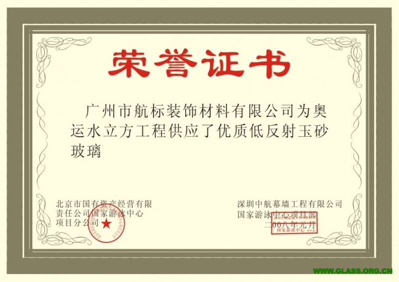 發證機構   北京國有資產經營有限責任公式國家游泳中心項目分公司 發證時間   2011-01-01