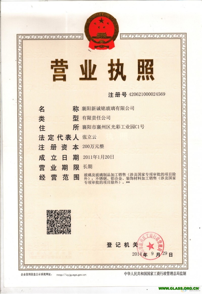 發(fā)證機(jī)構(gòu)   襄陽市襄州區(qū)工商行政管理局 發(fā)證時(shí)間   2014-09-29