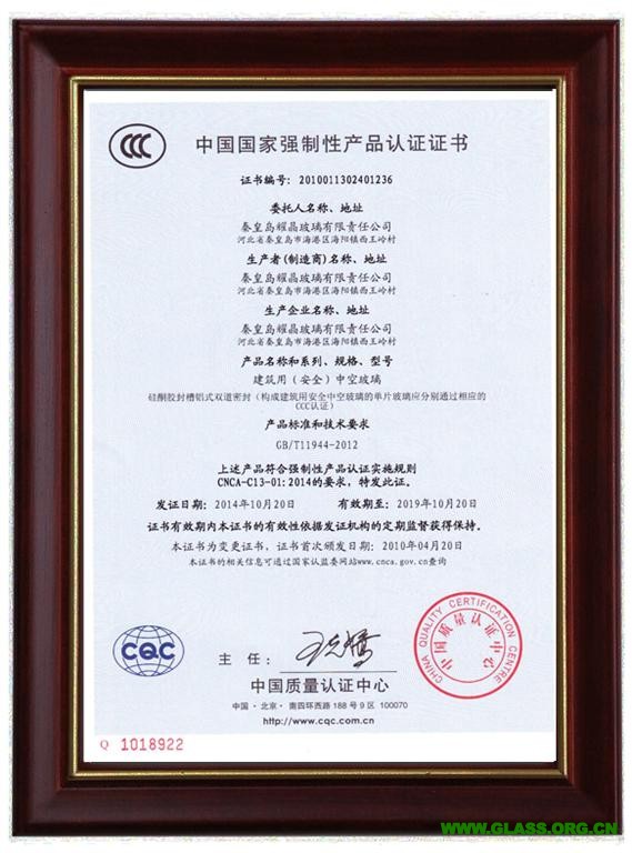 首頁 > 榮譽資質 > 中空玻璃3C認證