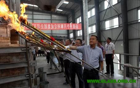 參加四川中科玻璃有限公司舉行二期工程竣工慶典的相關(guān)領(lǐng)導(dǎo)和嘉賓為全球最大的高端白酒玻璃窯爐點(diǎn)火,四川中科玻璃有限公司二期工程竣工正式投產(chǎn)運(yùn)行。