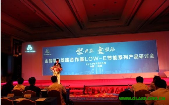 2012年7月20日下午,北京萬豪酒店燈火輝煌,一場以 “聚·共贏,變·領航”為主題金晶綠色戰略合作暨LOW-E節能系列產品研討會在此隆重舉行。