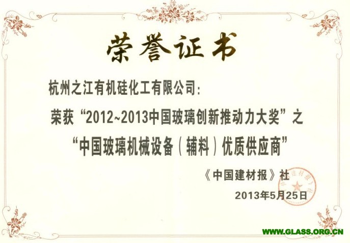 本次發布會由中國建材報社副社長孫凱文主持。孫凱文表示,此次活動跨界聯合,預示著建材行業重塑價值的主題,即“展開想象的翅膀,聯合跨界的力量,多領域跨行業集成創新”,這也是未來行業發展的方向。本次會議通過對節能環保、創新能力、品質服務、文化內涵、品牌競爭力、企業成長性、社會責任感、媒體評價度等8個方面的綜合甄選,隆重發布了2012-2013玻璃創新推動力大獎的八個獎項,包括中國玻璃創新推動力人物、最具品牌價值玻璃企業、中國玻璃創新卓越企業、中國玻璃機械設備(輔料)優質供應商、最具潛力玻璃創新產業集群、最具潛力玻璃新材料孵化基地、推動中國玻璃創新的金融力量特別貢獻獎以及推動中國創新的金融力量等45家產業集群、企業和個人獎項。杭州之江有機硅化工有限公司獲得了“中國玻璃機械設備(輔料)優質供應商獎”此次作為國內密封膠企業唯一的獲獎企業,也代表了市場和客戶對之江公司產品品質和市場口碑的認可。