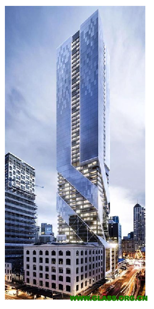 項目位于奧克蘭繁華的商業和金融中心,該大樓共57層,高178米,將成為新西蘭最高的摩天大樓。該項目開發商已買下朝北領空權,未來項目朝北的新建建筑都不能超過6層。項目使用信義玻璃工程(東莞)有限公司的雙銀低輻射夾膠中空玻璃。為了達到特殊的設計效果,該項目使用六款雙銀玻璃,其中兩款使用海洋藍基片。