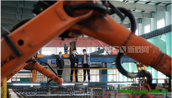 4月23日,河北省沙河市環(huán)境保護(hù)局執(zhí)法人員在河北鑫利玻璃有限公司內(nèi)向企業(yè)負(fù)責(zé)人了解企業(yè)生產(chǎn)情況。 2019年起,有“中國(guó)玻璃城”美譽(yù)的河北沙河市啟動(dòng)了“煙羽消白”工程,先后投入20億元對(duì)在產(chǎn)玻璃生產(chǎn)線實(shí)施超低排放改造,并結(jié)合提升廠區(qū)環(huán)境、優(yōu)化產(chǎn)能等措施,削減粉塵、二氧化硫、氮氧化物等污染物排放,推進(jìn)大氣污染治理。 新華社記者 牟宇 攝