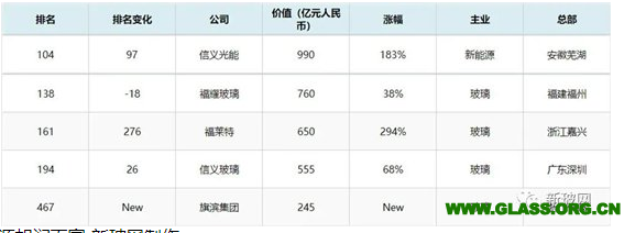 福萊特玻璃以650億元價值排名大幅上升276名至第161位,價值同比更是“暴漲”294%。