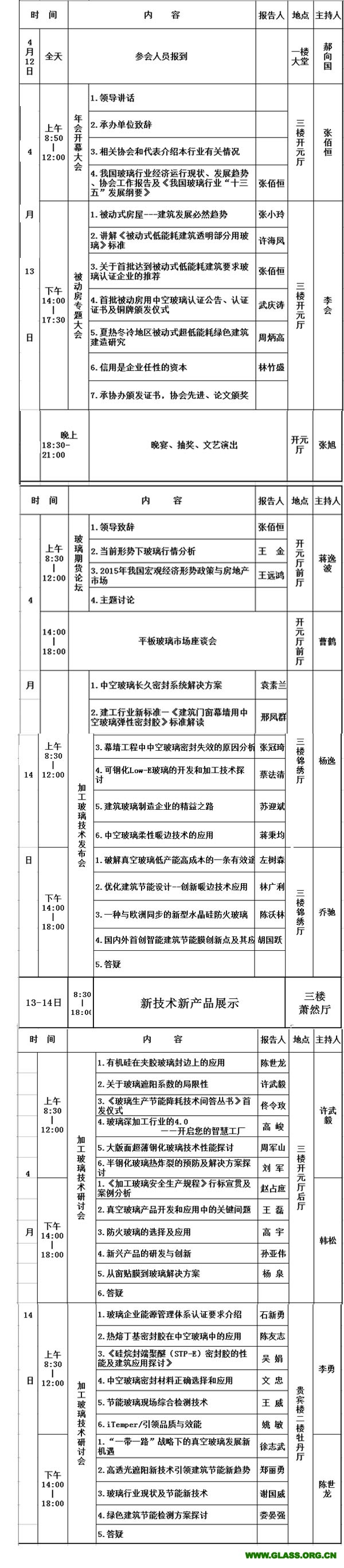 2015年中國玻璃行業年會日程安排