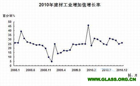 2010年,建筑材料行業經受了國際金融風暴等眾多的考驗,是各行業中發展最快的行業之一。從2005年發展至2010年,全國建材年工業銷售產值已達36133.6億元,五年增長了263.85%,特別是2010年,建材工業銷售產值同比增長33.37%。另外,全國建材工業增加值在“十一五”期間也同步有較快增長,平均年增長率也達到26%,(見圖1),2010年增加值同比增長28%,(見圖2)。