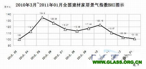 “十一五”期間我國的建材家居市場及建材物流園區的發展是令人興奮的。五年前規模以上建材家居市場不足1000家,而且市場水平僅處在1—2代之間。銷售額也幾乎無法統計,管理較為混亂。到“十一五”末,2010年全國規模以上建材家居市場已超過了3000家。“全國建材家居景氣指數BHI”也由中國建筑材料流通協會于當年3月推出(見圖8)。