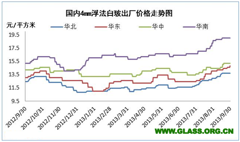 華南:在第三季度中,華南市場玻璃生產廠家價格主流上漲幅度在12-15元/重量箱之間。7月份因臺風、暴雨等不利條件影響,廠家操作謹慎,僅有小幅提漲動作。但進入8月份之后,下游旺季需求表現良好,月初舉行華南會議,業者達成“小步慢跑”的共識,加之由于物流車十分難尋,華中低價貨源難以進入該地,廠家拉漲成功,市場價格持續上調,交投氛圍較為強烈。初進9月份又受到數日降雨天氣影響,廠家出貨速度有所放緩,但因庫存仍在正常范圍甚至偏低的情況下,小漲局面仍未改變。后期隨著華中低價貨源的進入以及“雙節”的限制下,多數生產企業未有明顯提漲動作,僅以維持盤整局面為主。