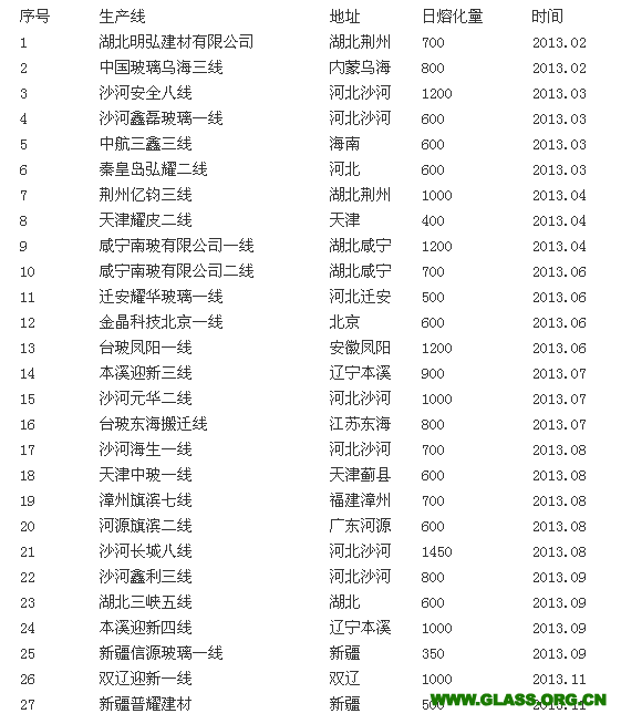 表1 我國浮法玻璃生產(chǎn)線統(tǒng)計表 單位:條,億重箱
