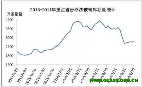 2014年9月份全國玻璃生產企業庫存情況分析![]() 由卓創資訊統計的重點省份庫存量來看,玻璃原片生產企業庫存量經過上半年持續的高位庫存量之后,8月份行情轉好,庫存量明顯回歸低位,但在9月份庫存出現了小幅增加。本月底重點省份庫存量2760萬重量箱,同比增加903萬重量箱,環比增加131萬重量箱。經過了8月份,多數用戶已有一定囤貨,加之中秋節以及國慶節的影響,各地市場成交出現了放緩跡象,但是畢竟處于“金九”時節,因此整體庫存僅有小幅增加。