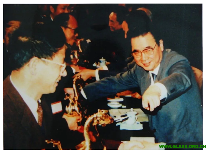 ▲圖為1995年“十七屆國際玻璃大會”期間國家建材局林漢雄、王燕謀、張人為“三任局長”合影;