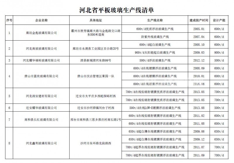 日前,河北公布2020年度全省水泥熟料平板玻璃生產(chǎn)線清單。詳情如下: