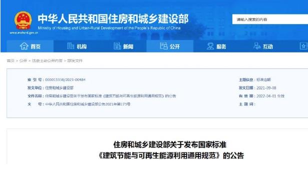4月1日國家標準《建筑節能與可再生能源利用通用規范》(GB 55015—2021)開始實施。