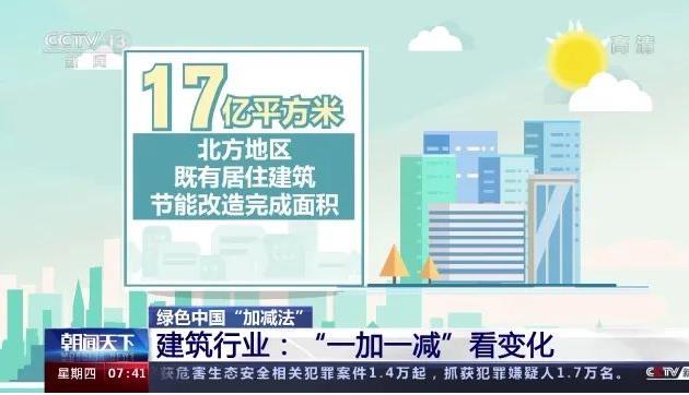 近幾年,我國在城鄉建設領域擴大綠色建筑技術應用、推動綠色建材發展。通過“一加一減”的數據當中看我們生活和工作的地方是如何越來越低碳的。