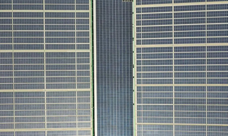 ??這是4月15日在廣西北海市鐵山港(臨海)工業(yè)區(qū)內(nèi)拍攝的一家企業(yè)。這家企業(yè)廠(chǎng)房屋頂鋪滿(mǎn)了太陽(yáng)能光伏板,這些太陽(yáng)能光伏板使用的玻璃就是當(dāng)?shù)匾患也Aa(chǎn)企業(yè)的產(chǎn)品。