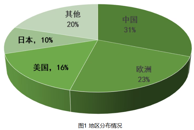 從地區(qū)分布看,百家公司主要分布在亞洲、歐洲和北美洲。亞洲公司數(shù)量最多,主要分布在中國和日本等國家;歐洲公司主要分布在法國、愛爾蘭和瑞士等國家;北美洲公司主要分布在美國、墨西哥等國家。