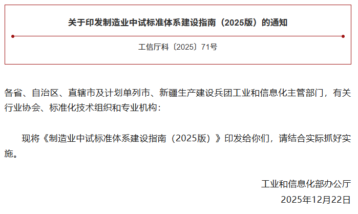 工業和信息化部近日印發《制造業中試標準體系建設指南(2025版)》,提出堅持“系統布局、急用先行,創新驅動、應用牽引,工作協同、開放合作”原則,統籌推進制造業中試標準制定、實施和國際化。到2027年累計制修訂標準50項以上,到2030年累計制修訂標準100項以上,建成涵蓋基礎通用、關鍵技術和行業應用的先進制造業中試標準體系,引領制造業中試創新發展。