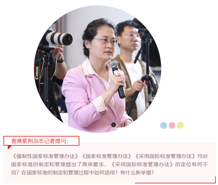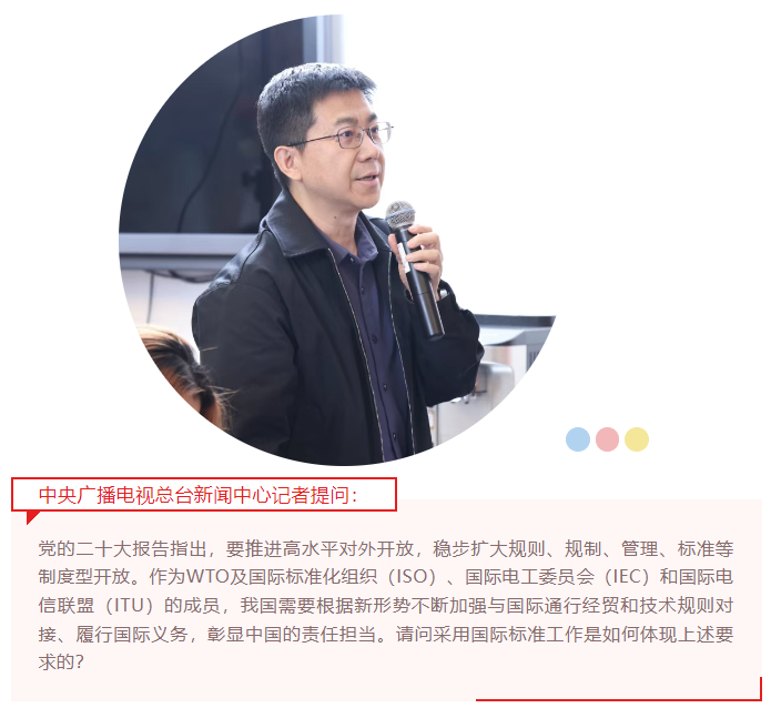 在此,我向各位記者朋友介紹一下“采標國家標準”的概念。采標國家標準,即采用國際標準并將其內容轉化為我國國家標準。實際上,我們還有部分國家標準是根據我國實際需要制定的,而非采用國際標準。我先簡要介紹這些內容。謝謝大家!