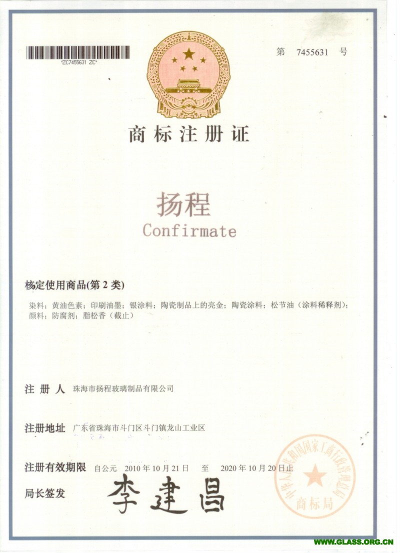 發證機構:   國家工商行政管理總局 發證時間 :   2010-10-21