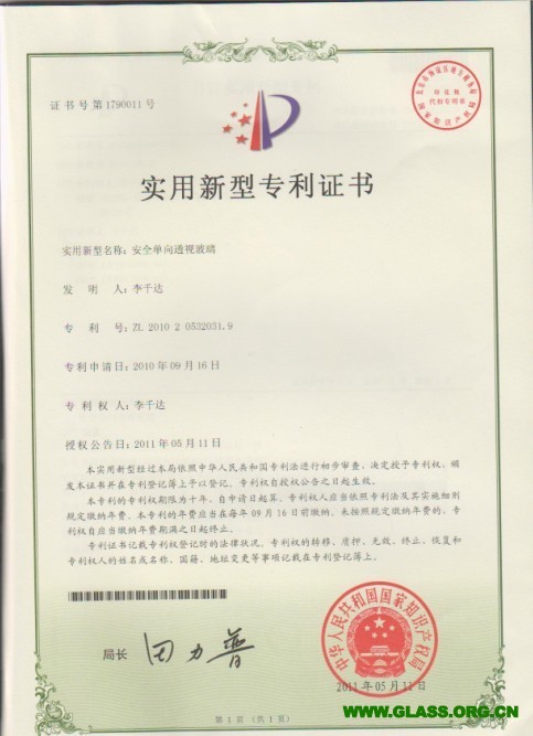 您當前的位置:首頁 » 榮譽資質 » 安全單向透視玻璃專利