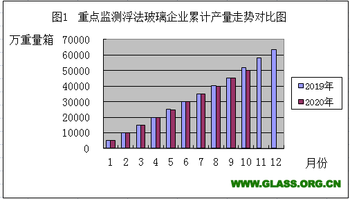 2019年與2020年重點(diǎn)監(jiān)測浮法玻璃企業(yè)累計(jì)產(chǎn)量走勢對比圖(2020年10月份)