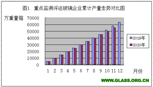 2019年與2020年重點監(jiān)測浮法玻璃企業(yè)累計產(chǎn)量走勢對比圖(2020年11月份)