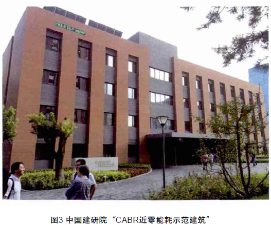 建科院“CABR近零能耗示范建筑”是“中美清潔能源合作”重要項目(見圖3),于2014年完成。該建筑通過高性能圍護結構、地源熱泵系統和太陽能光熱、光電系統聯合應用,使建筑物達到“冬季不使用傳統化石能源供暖、夏季空調能耗降低50%、建筑照明能耗降低75%”的目標。建筑外窗玻璃采用新立基生產的傳熱系數為0.6W/(m2·K)的半鋼化Low-E真空玻璃,整窗傳熱系數小于1.0W/(m2·K)。