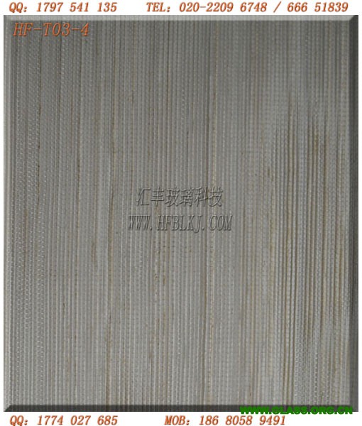 匯豐玻璃科技自主研發,生產,銷售的建筑玻璃、裝飾玻璃、藝術玻璃、玻璃隔斷、玻璃屏風夾絲材料圖案精美、色彩豐富、款式新穎、富有現代感,深受廣大玻璃廠的喜愛。匯豐玻璃科技開發的玻璃夾絲材料、移門夾絲材料、玻璃背景墻材料、玻璃絹絲材料、玻璃絹布材料、夾膠玻璃材料、夾絲玻璃材料、金屬絲、日本和紙、石紋紙、線紗、麻絲、絲綢……廣泛應用于建筑工程、KTV裝飾裝潢工程、會所裝飾裝潢工程、工藝玻璃、安全玻璃門、移門、玻璃馬賽克、布燈罩、裝飾板材及高檔包裝等行業。欲了解詳情,敬請致電 020-22096748 / 66651839 , 訪問公司網站www.hfblkj.com匯豐玻璃科技歡迎各位新老客戶來電索取玻璃夾絲材料小樣,洽談業務。