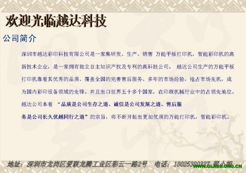 六、深圳越達公司玻璃櫥柜打印機服務承諾: