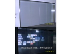 LCD液晶調光膜在投影屏方面的應用已經取得很大的進展。這種新型的投影屏不僅綜合了目前正在使用的投影屏的諸多功能,例如可以正反兩面同時顯示的投影屏,可以透視顯示的投影屏都在我們的這個新型投影屏中實現了完美的統一;而且新型投影屏透視顯示的透光率是可以調節的,從而實現最佳的透視投影效果。此外,新型投影屏如果是安裝在窗戶上的時候,新型投影屏通電透明、不通電不透明,呈現乳白狀態還具有隔斷的功能、隱形窗簾的功能。新型投影屏的透光率是可以調節的,利用這個功能可以調節陽光的透光程度,起到良好的遮陽作用。新型投影屏還可以添加觸摸功能。與新型投影屏配套的多功能控制器已經研制完成。目前這種新型投影屏已經投入市場并且在應用中。在實際使用的過程中還將不斷地進行完善和提高。
