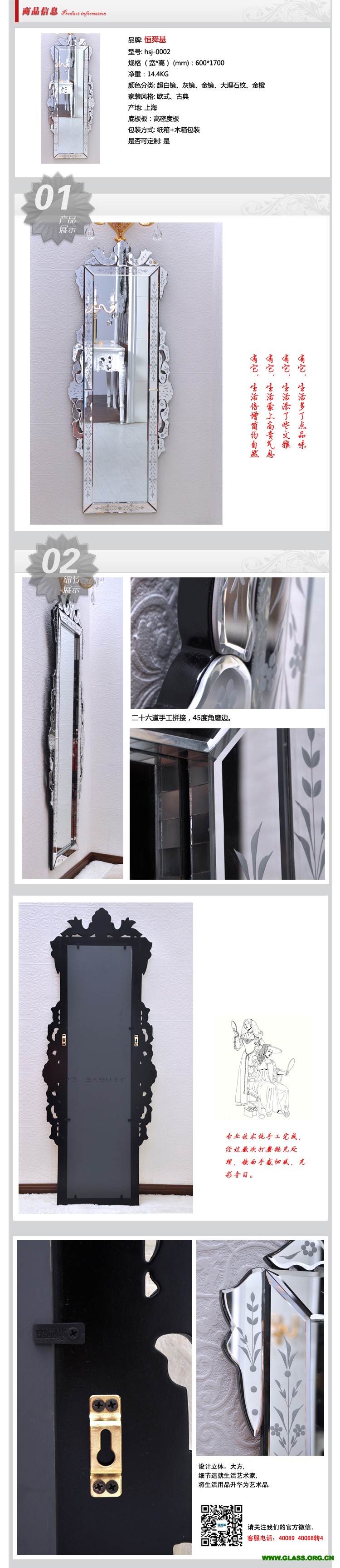 憑借先進(jìn)的設(shè)備和精湛的工藝,通過(guò)不斷的的實(shí)踐與創(chuàng)新,專(zhuān)注于藝術(shù)玻璃的設(shè)計(jì)、開(kāi)發(fā)、生產(chǎn)、于一體的綜合性企業(yè)。并創(chuàng)立了自有品牌“恒舜基”藝術(shù)玻璃。“恒舜基”藝術(shù)玻璃主要產(chǎn)品有國(guó)內(nèi)首創(chuàng)的閃光冰鉆玻璃系列,精彩鉆玻璃系列,曼殊.威尼斯鑲嵌彩繪玻璃、彩雕玻璃、水幕墻、玻璃雕塑等玻璃精品,意大利古典宮廷鏡為我司新產(chǎn)品,由意大利著名設(shè)計(jì)師Ferrucc jo Laviani設(shè)計(jì),品種多樣,風(fēng)格各異,每件產(chǎn)品純手工經(jīng)二十六道工序制作完成。奢華的歐式古典鏡以玻璃材質(zhì)勾勒復(fù)雜而華麗的歐式線(xiàn)條;色彩和圖案非常民族性,而且鏡框的設(shè)計(jì)也好似歐式宮廷感覺(jué)。