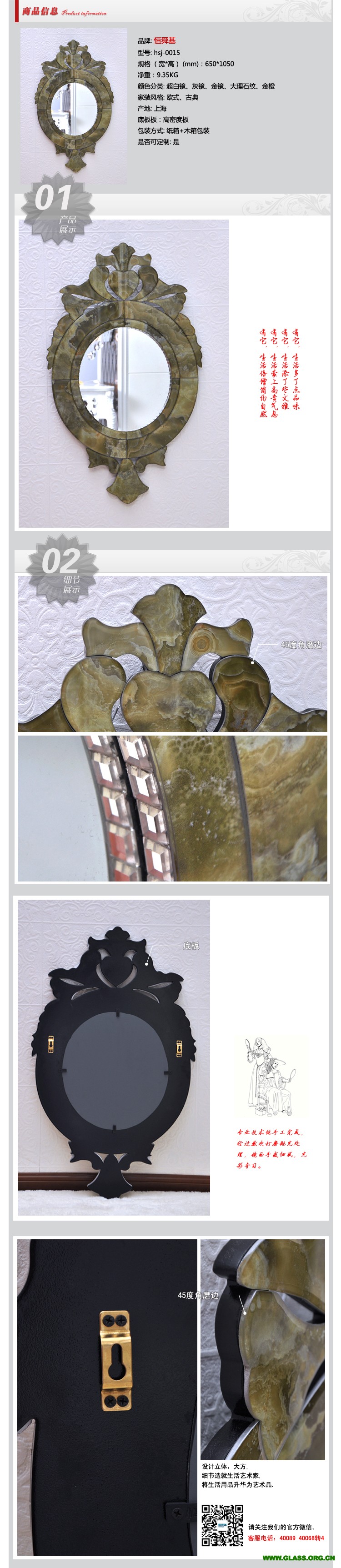 上海榮萊裝飾材料有限公司目前是一家擁有一支高水平素質的科研人員與專業人才隊伍憑借先進的設備和精湛的工藝,通過不斷的的實踐與創新,專注于藝術玻璃的設計、開發、生產、于一體的綜合性企業。并創立了自有品牌“恒舜基”藝術玻璃。“恒舜基”藝術玻璃主要產品有國內首創的閃光冰鉆玻璃系列,精彩鉆玻璃系列,曼殊.威尼斯鑲嵌彩繪玻璃、彩雕玻璃、水幕墻、玻璃雕塑等玻璃精品,意大利古典宮廷鏡為我司新產品,由意大利著名設計師Ferrucc jo Laviani設計,品種多樣,風格各異,每件產品純手工經二十六道工序制作完成。奢華的歐式古典鏡以玻璃材質勾勒復雜而華麗的歐式線條;色彩和圖案非常民族性,而且鏡框的設計也好似歐式宮廷感覺。