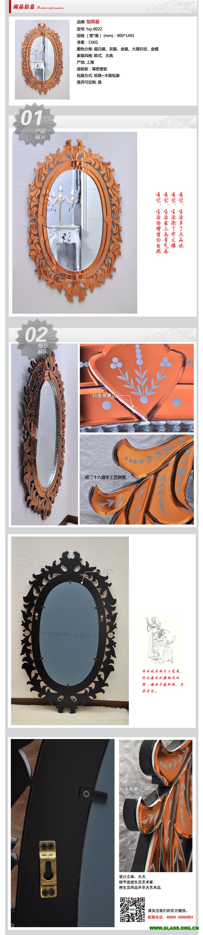 上海榮萊裝飾材料有限公司目前是一家擁有一支高水平素質的科研人員與專業人才隊伍憑借先進的設備和精湛的工藝,通過不斷的的實踐與創新,專注于藝術玻璃的設計、開發、生產、于一體的綜合性企業。并創立了自有品牌“恒舜基”藝術玻璃。“恒舜基”藝術玻璃主要產品有國內首創的閃光冰鉆玻璃系列,精彩鉆玻璃系列,曼殊.威尼斯鑲嵌彩繪玻璃、彩雕玻璃、水幕墻、玻璃雕塑等玻璃精品,意大利古典宮廷鏡為我司新產品,由意大利著名設計師Ferrucc jo Laviani設計,品種多樣,風格各異,每件產品純手工經二十六道工序制作完成。奢華的歐式古典鏡以玻璃材質勾勒復雜而華麗的歐式線條;色彩和圖案非常民族性,而且鏡框的設計也好似歐式宮廷感覺。