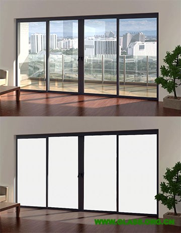 調光膜是一種新型的電子控光產品,電控智能調光膜器件是在兩張透明導電膜中間注入液晶/聚合物混合材料,在沒有電場作用的情況下,電控智能調控膜處于不透明狀態;當通入交流電時,液晶分子實現有序排列,這時電致調光膜便從不透明態(OFF態)轉換為透明.通過電場作用,能夠實現從開態-關態,關態→開態之間的快速轉換.