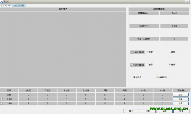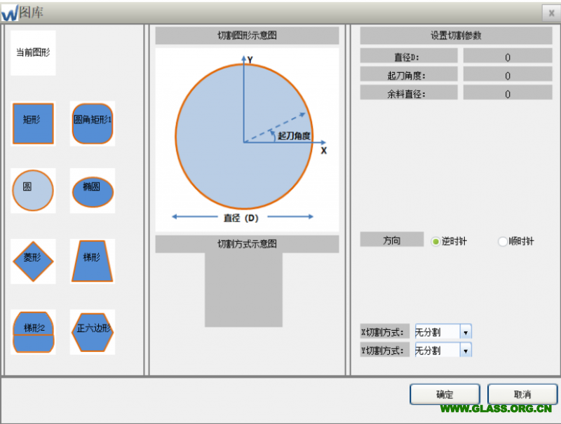 Anyform 軟件提供三區(qū)域(主料、X 方向余料、Y 方向余料)、多區(qū)域(手動計算并設定)圖形排版功能。圖庫功能提供當前導入圖形、矩形(直角倒角矩形)、 圓角矩形、圓、橢圓、菱形、梯形(等腰、非等腰、圓弧腰、多段圓弧腰)等圖形作圖功能,分別詳細說明如下: