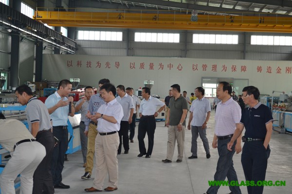 吳江金剛玻璃有限公司總經理張堅華帶領各位領導、專家及代表參觀金剛吳江工廠