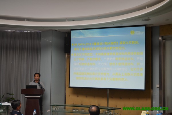 廣東金剛玻璃有限公司總工程師吳從真講解GB50016-2014建筑設計防火規范有關玻璃部分