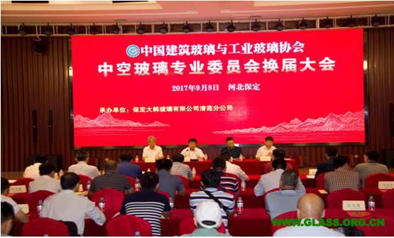 2017年9月8日,中國建筑玻璃與工業玻璃協會在河北保定召開中空玻璃專業委員會換屆大會。出席會議的有:中國建筑玻璃與工業玻璃協會會長助理李會;第六屆中空玻璃專業委員會主任委員許武毅、副主任委員、常委委員、常委單位代表以及會員單位代表、專業委員會秘書處工作人員等共44人。