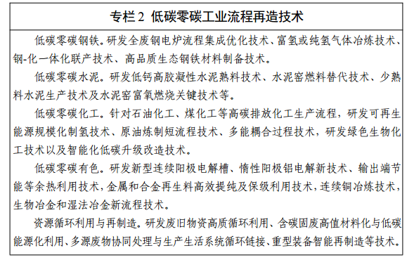二、低碳與零碳工業流程再造技術突破行動