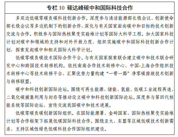 十、碳達峰碳中和科技創新國際合作行動