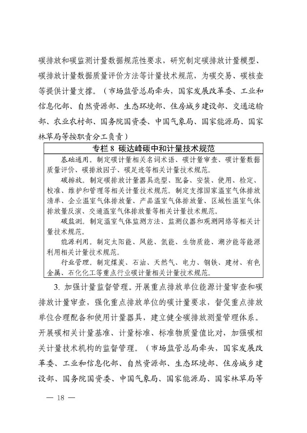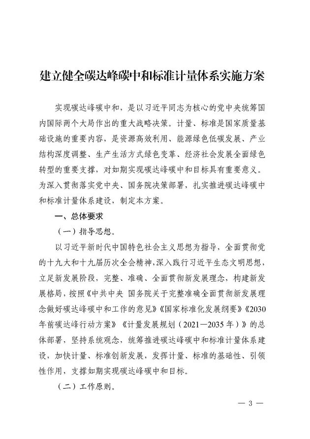 《建立健全碳達(dá)峰碳中和標(biāo)準(zhǔn)計(jì)量體系實(shí)施方案》